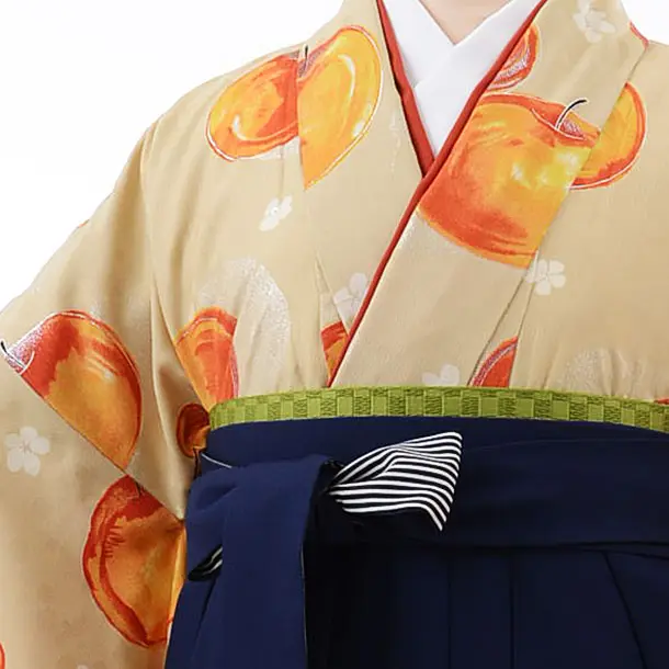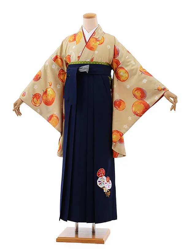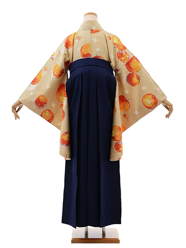 卒業式袴レンタルh583モダンアンテナベージュ地りんご×紺袴