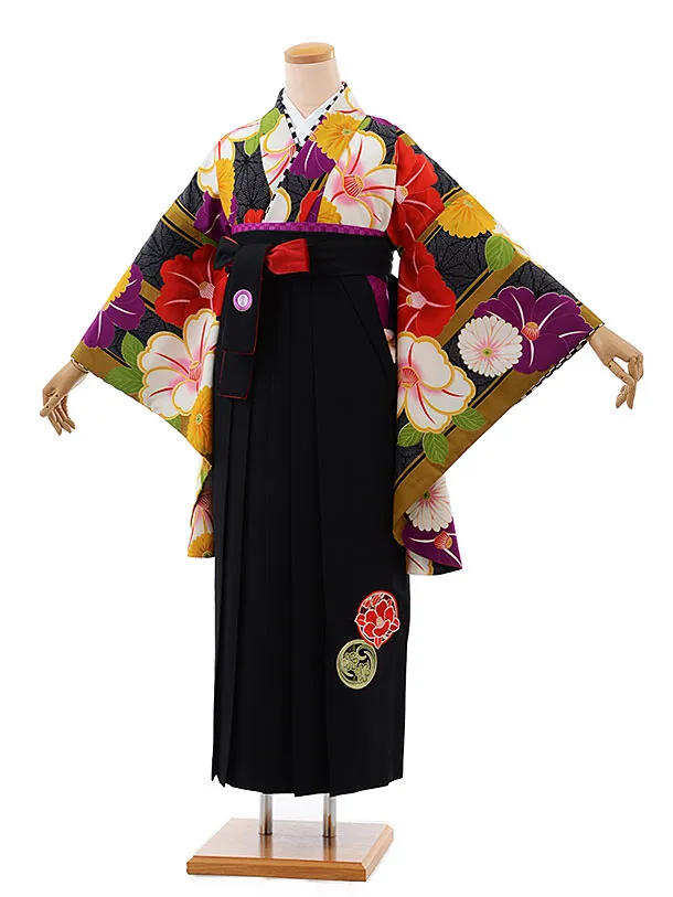 卒業式袴レンタルh592JAPANSTYLE椿×黒袴