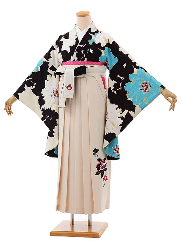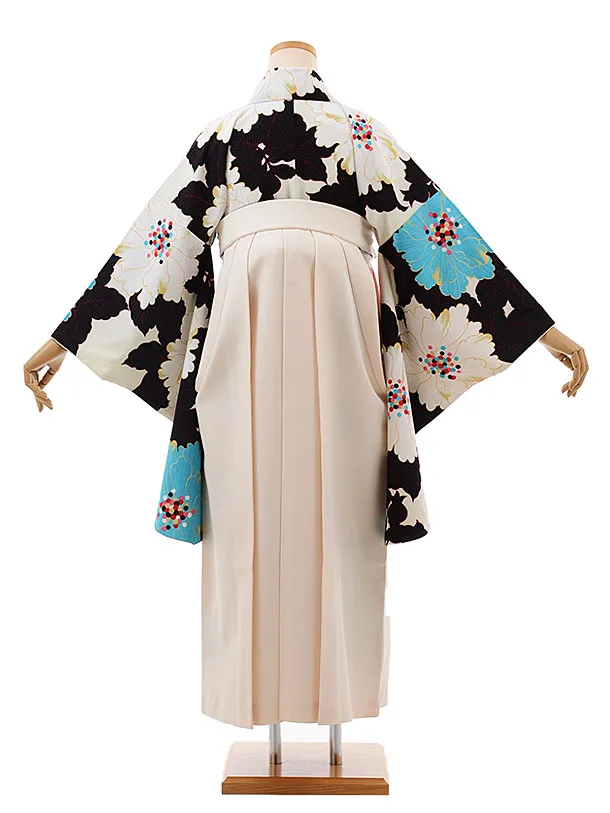 卒業式袴レンタルh605紅一点クリーム黒乙女パール花×白袴