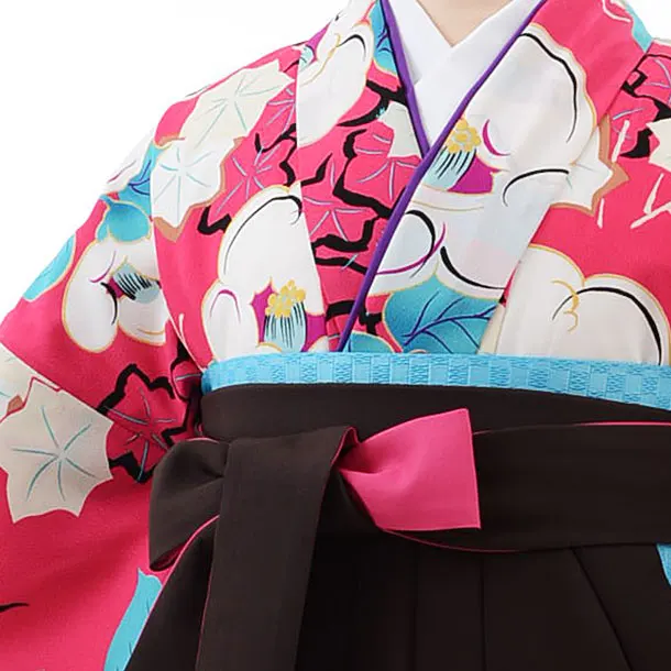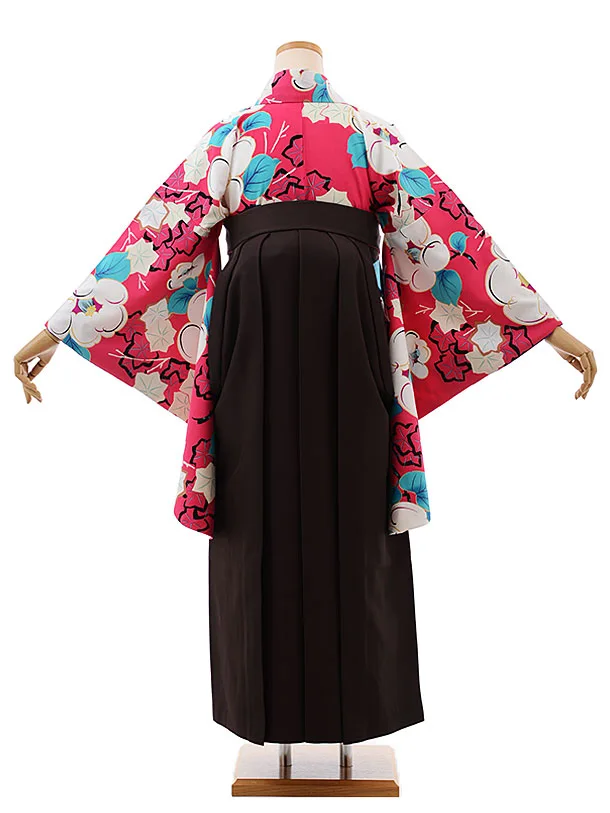卒業式袴レンタルh611紅一点ピンク椿×茶袴