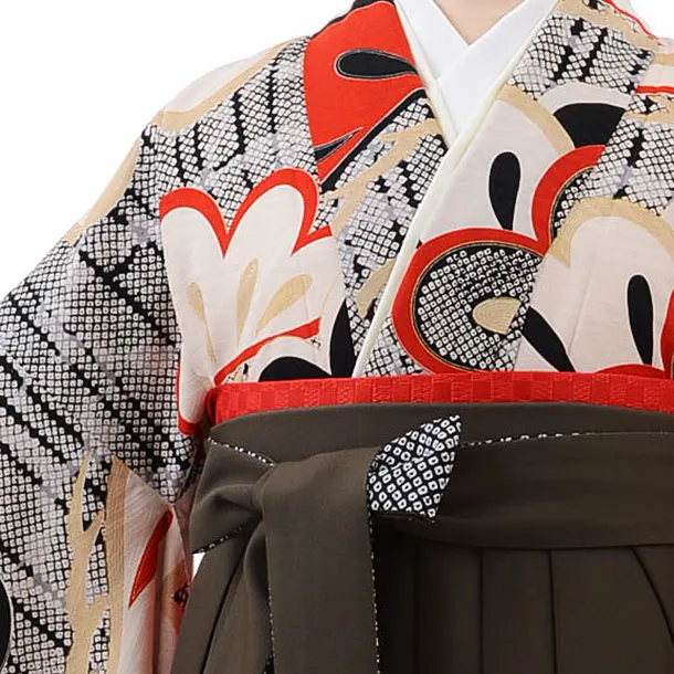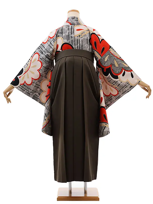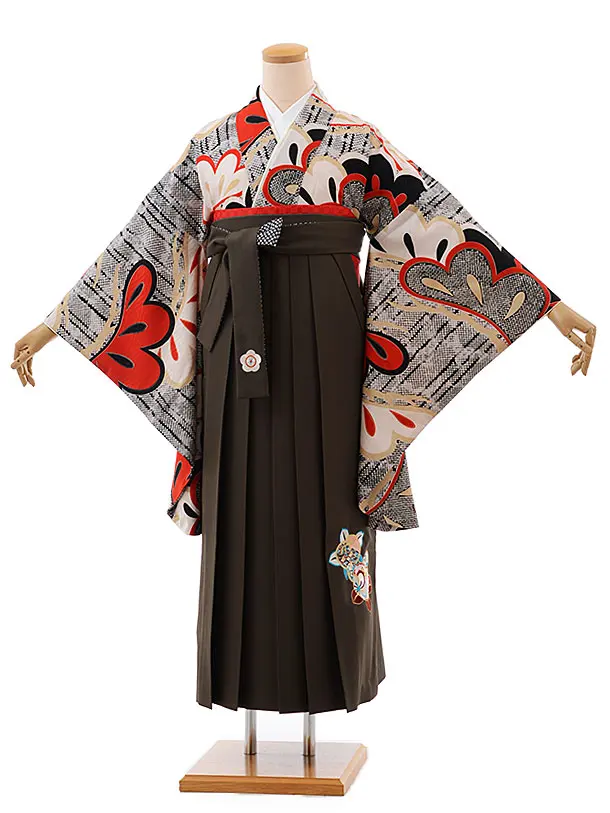 卒業式袴レンタルh615九重黒松疋田模様×茶袴