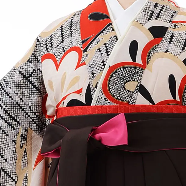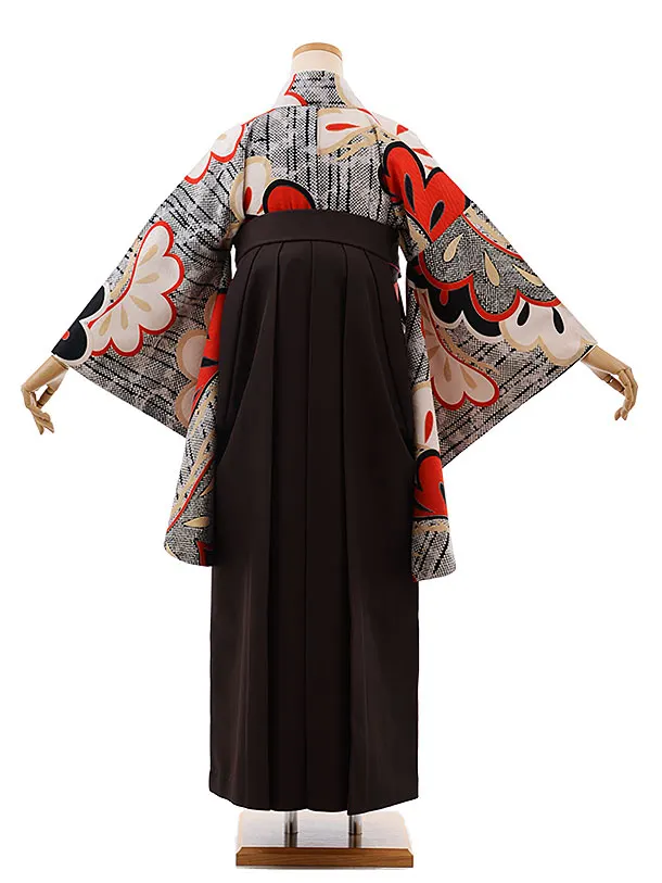 卒業式袴レンタルh617九重黒松疋田模様×茶袴