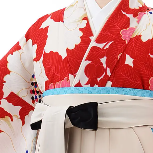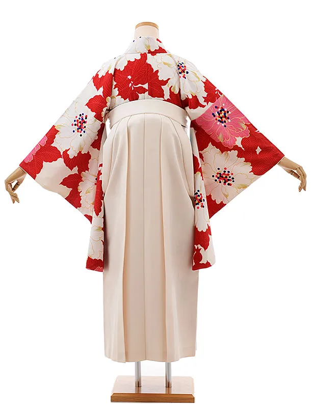 卒業式袴レンタルh618紅一点クリーム赤乙女パール花×白袴