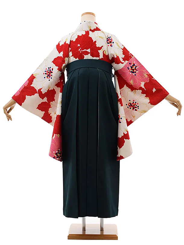 卒業式袴レンタルh620紅一点クリーム赤乙女パール花×緑袴