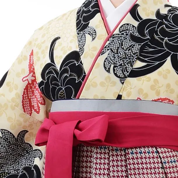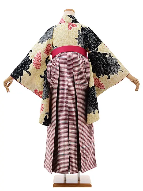卒業式袴レンタルh626ラフィネモカベージュ大菊×千鳥ピンク袴