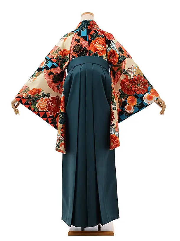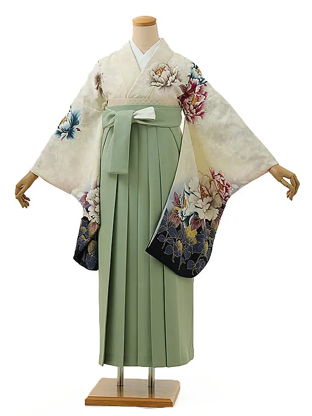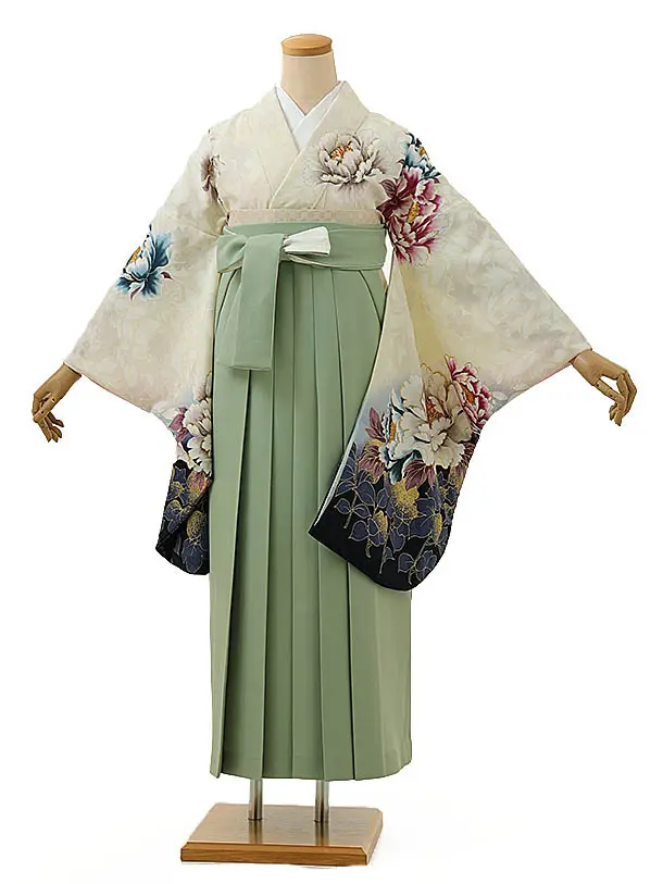 【背が高いサイズ】卒業袴レンタル h629 ベージュ ぼたんxグリーン袴