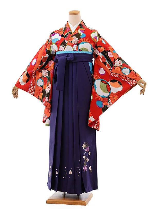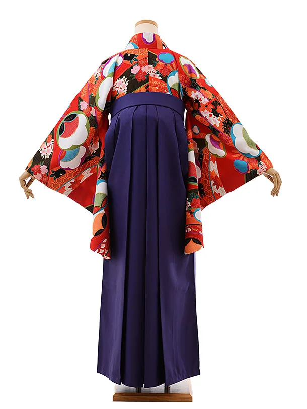 【背が高いサイズ】卒業袴レンタル h631 赤地 梅xパープル袴