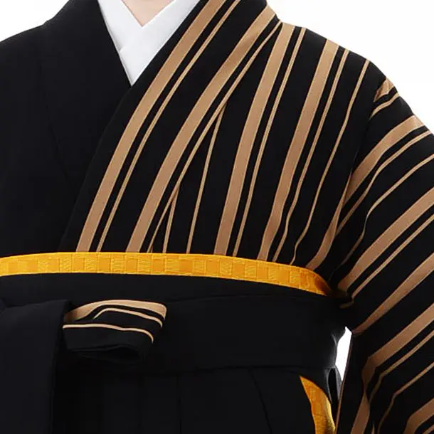 卒業袴レンタル h633 黒 ベージュ ストライプx黒袴
