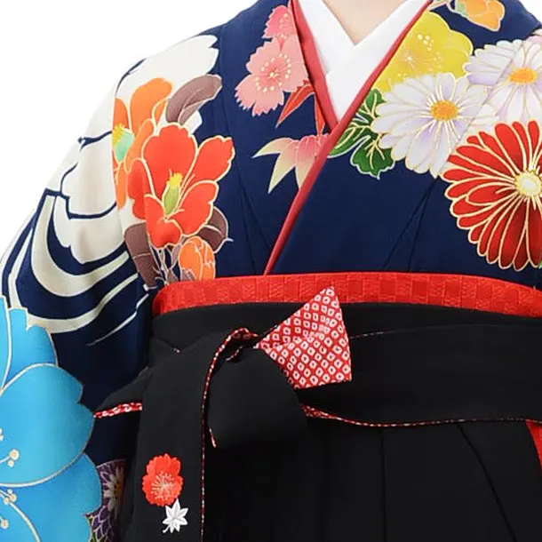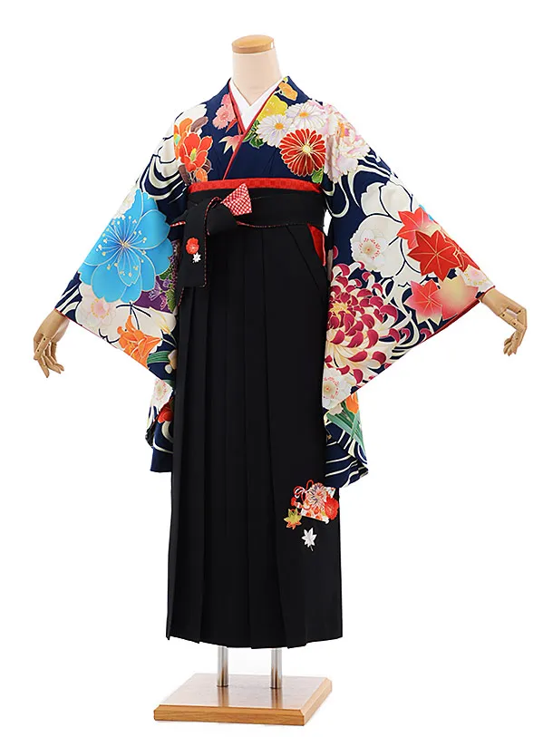 卒業袴レンタルh636 JAPAN STYLE 紺地 大花x黒袴