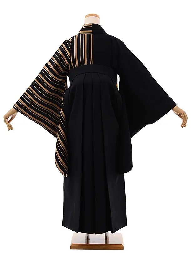 卒業袴レンタル h650 黒 ベージュ ストライプx黒袴