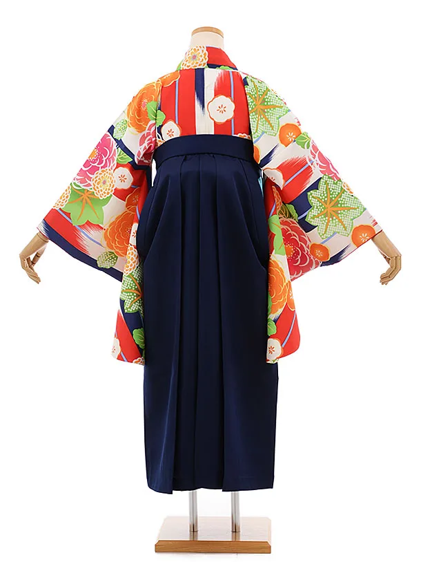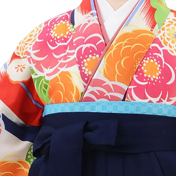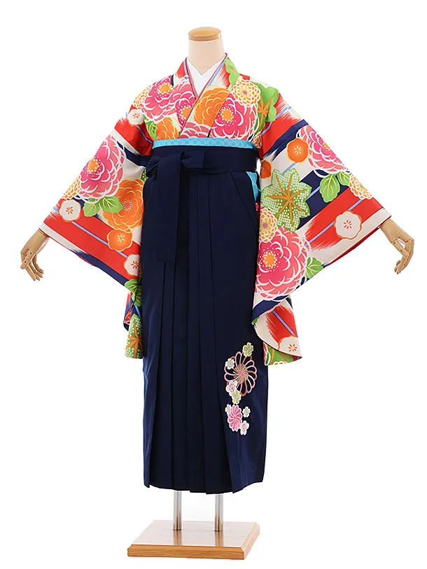 卒業袴レンタルh686 白赤 矢羽根に花 x 紺袴