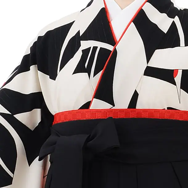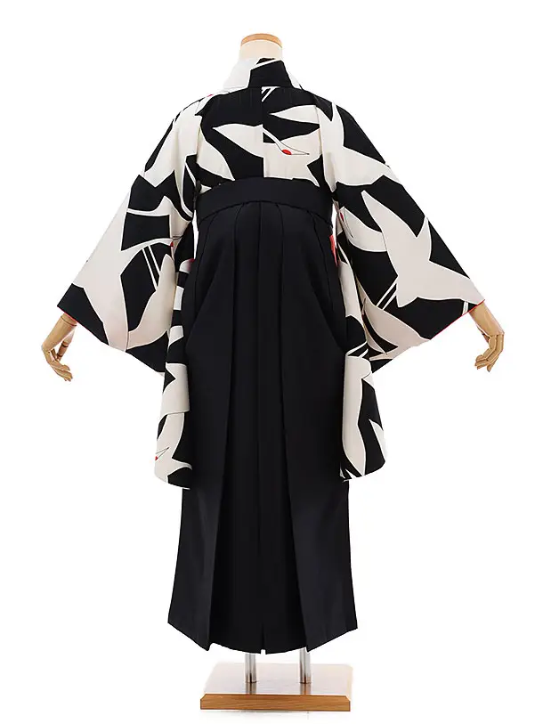 卒業袴レンタルh690 黒地に鶴 x 黒 椿 袴