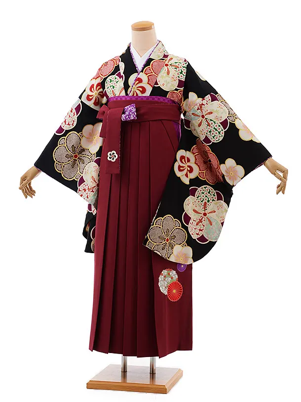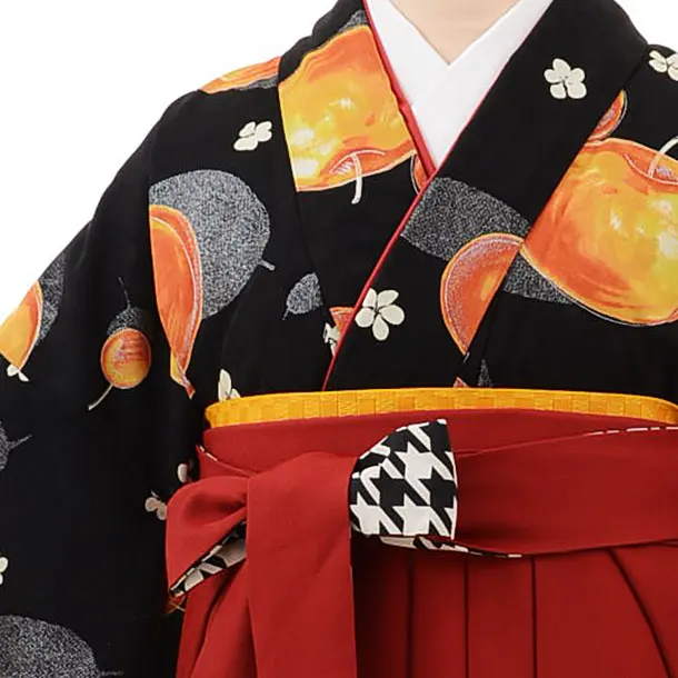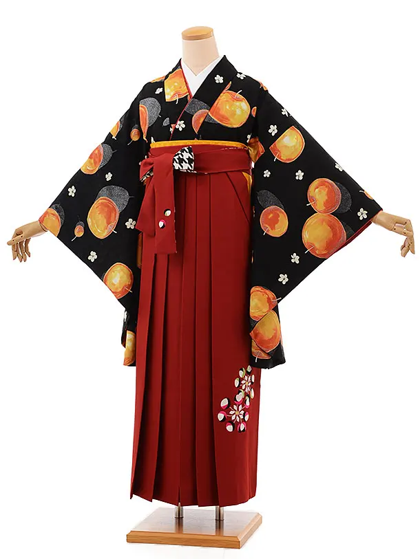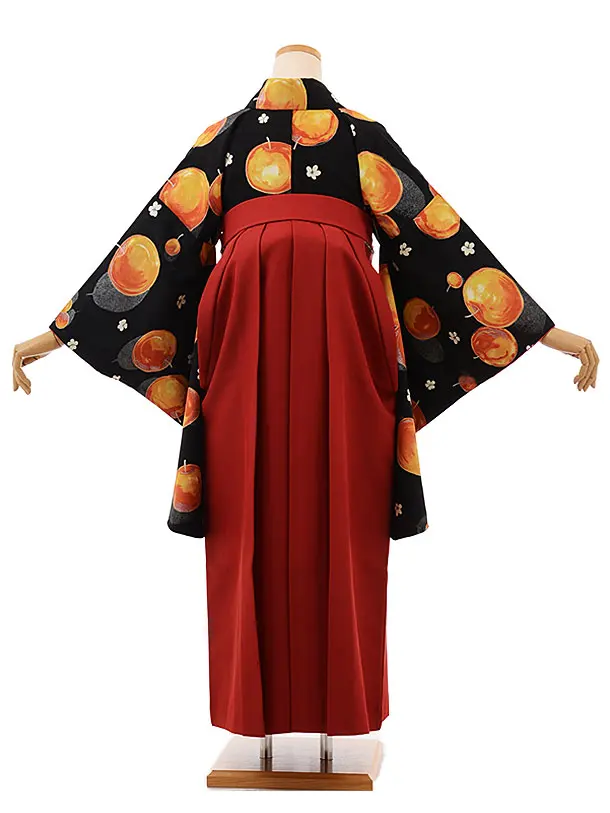 卒業袴レンタル h696 黒地りんご×赤袴