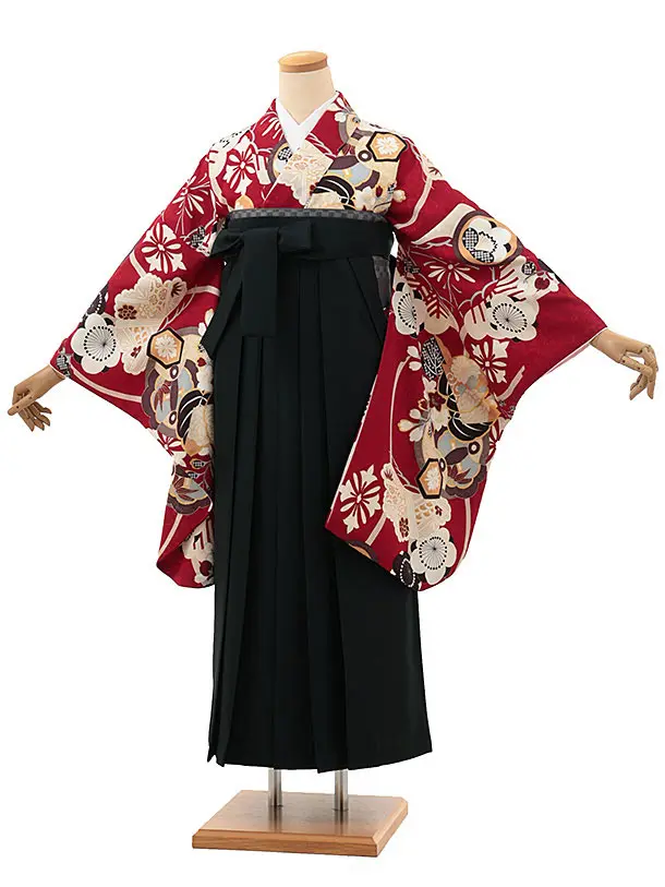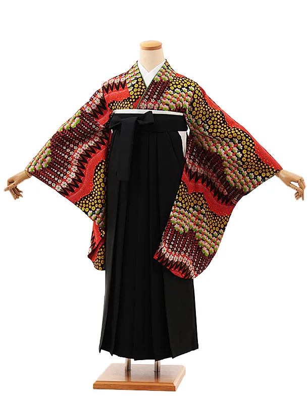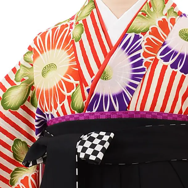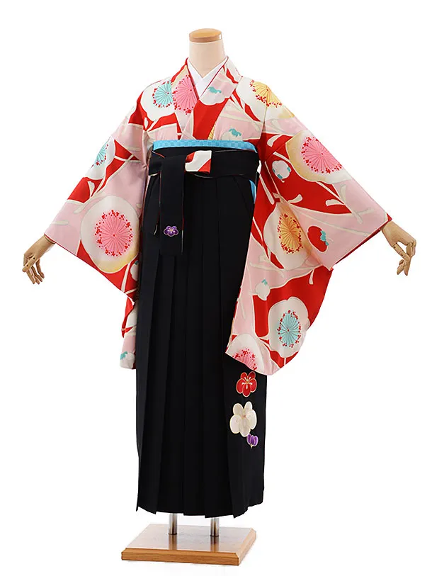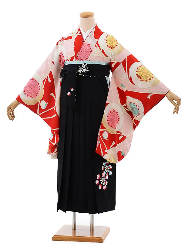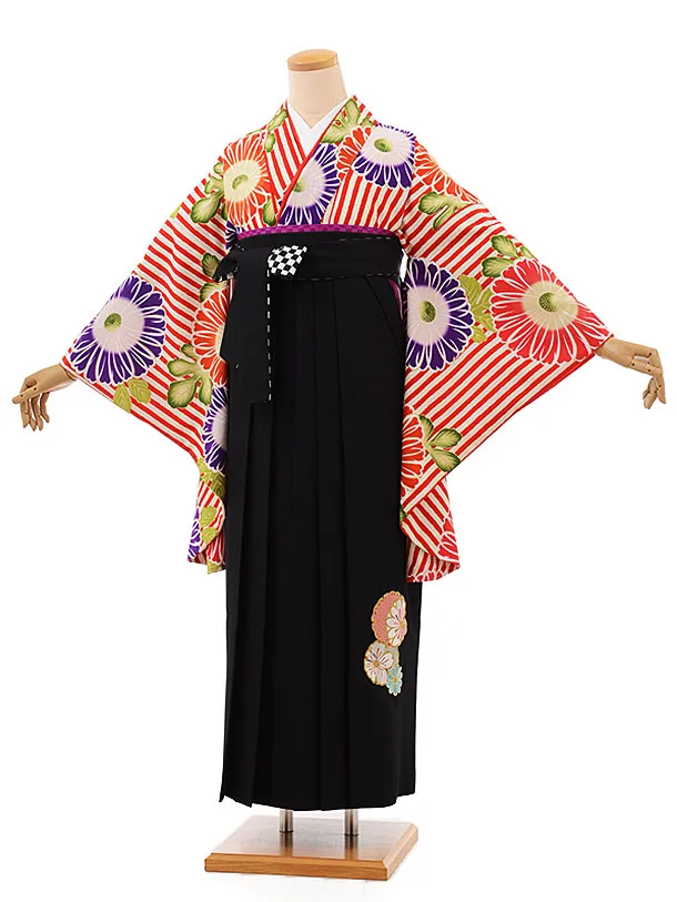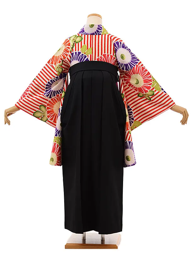 卒業袴レンタル h697 赤白ストライプ花×黒袴