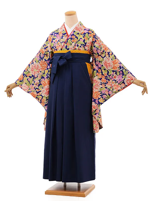 卒業袴レンタル h701 モダンアンテナパープル花×馬乗り袴