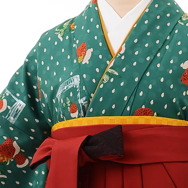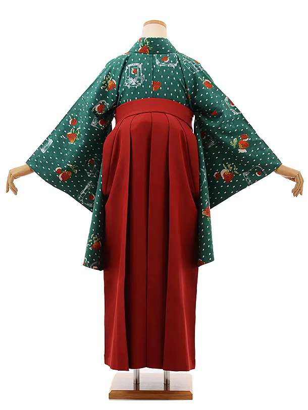 卒業袴レンタル h702 モダンアンテナグリーン苺×赤袴