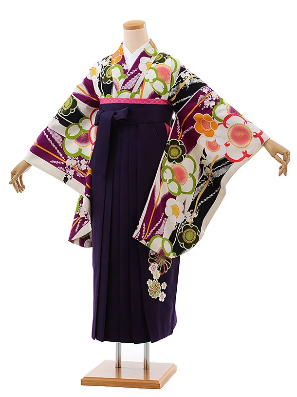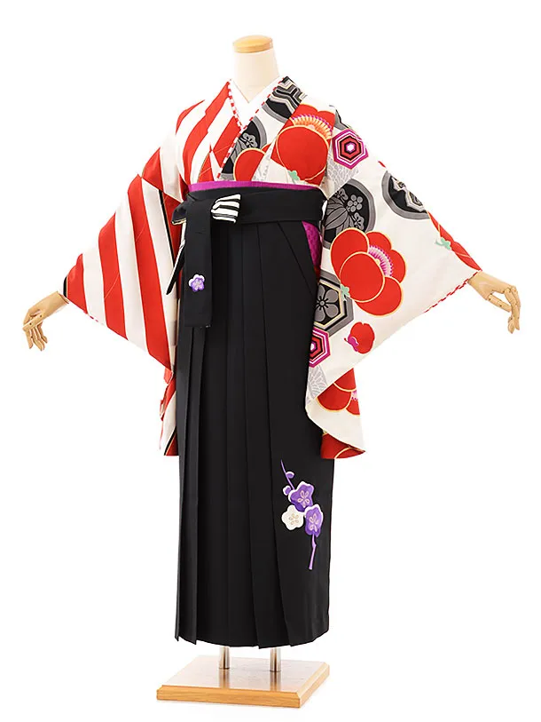 卒業式袴レンタルh714 JAPANSTYLE 白片身代わり梅x黒袴