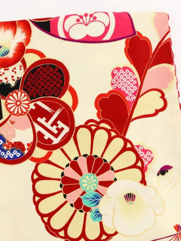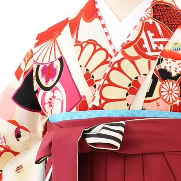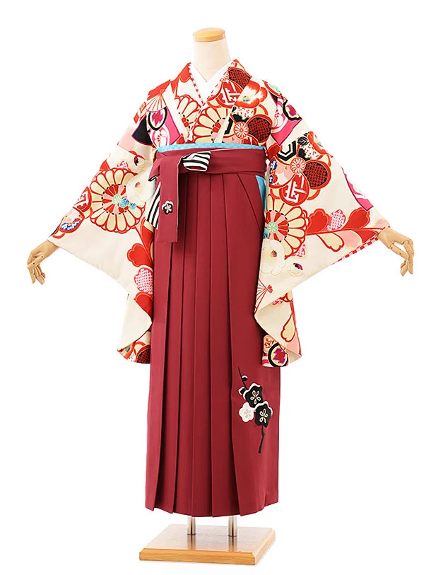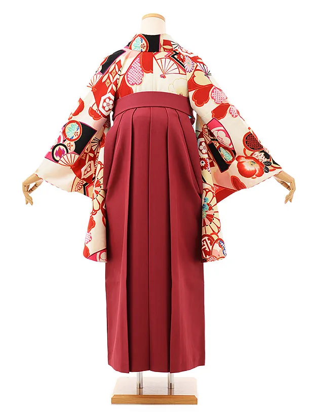卒業式袴レンタルh716 JAPANSTYLE クリーム扇面に菊xエンジ袴