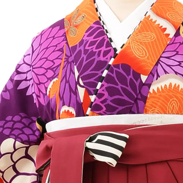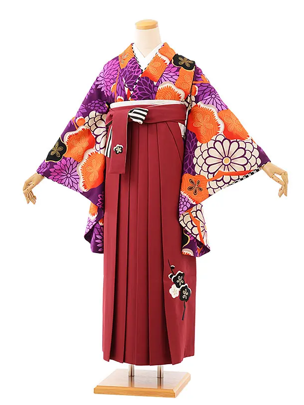 卒業式袴レンタルh717 JAPANSTYLE パープル地梅xエンジ袴