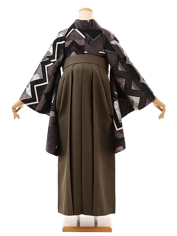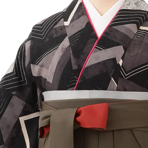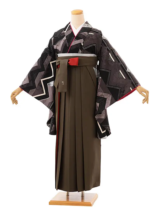 卒業式袴h719 モダンアンテナ 稲妻チャコールxチャコールグレー/赤