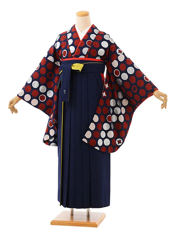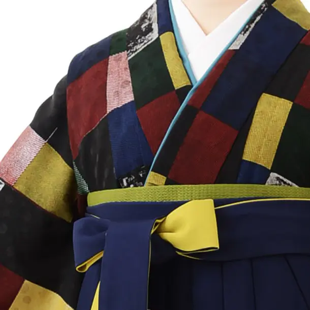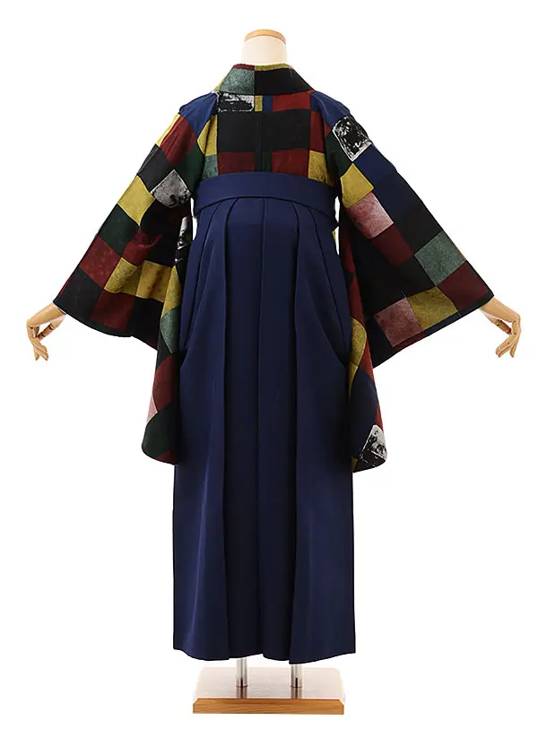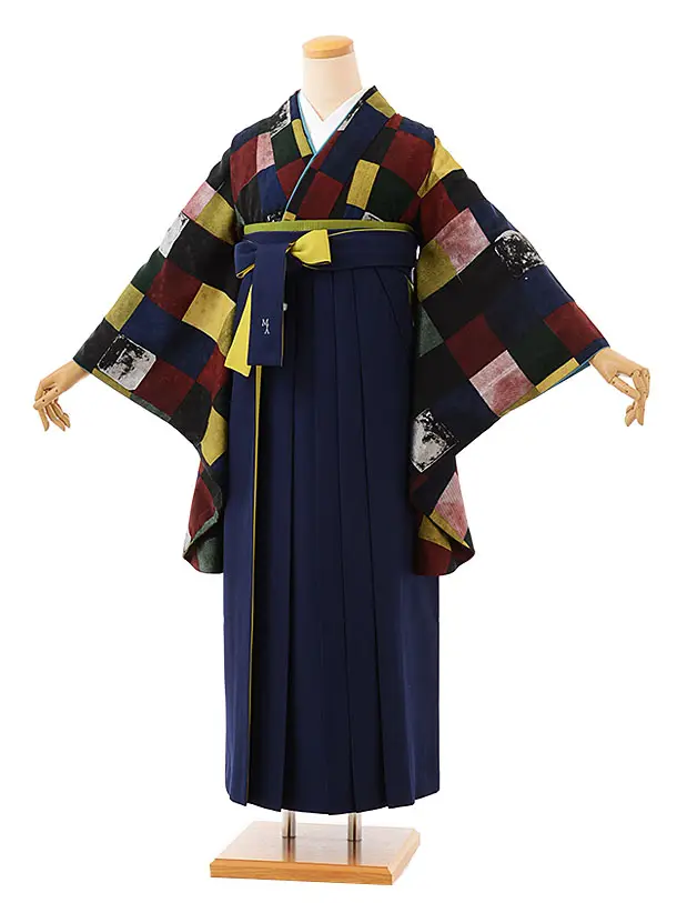 卒業式袴h720 モダンアンテナ 連続カラフルx紺/からし