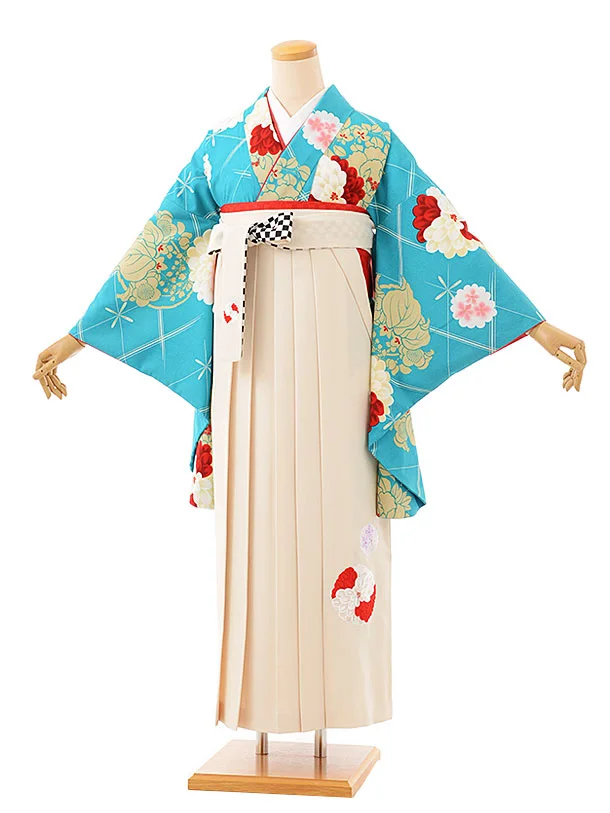 卒業式袴レンタルh731 玉城ティナx紅一点 ターコイズ鞠菊xクリーム袴