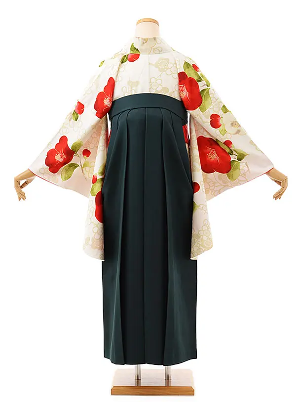 卒業式袴レンタルh732 玉城ティナx紅一点 クリーム赤椿梅xグリーン袴