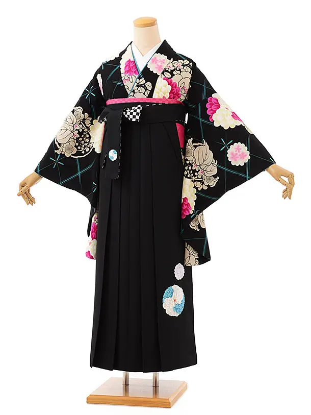卒業式袴レンタルh734 玉城ティナx紅一点 黒鞠菊x黒袴