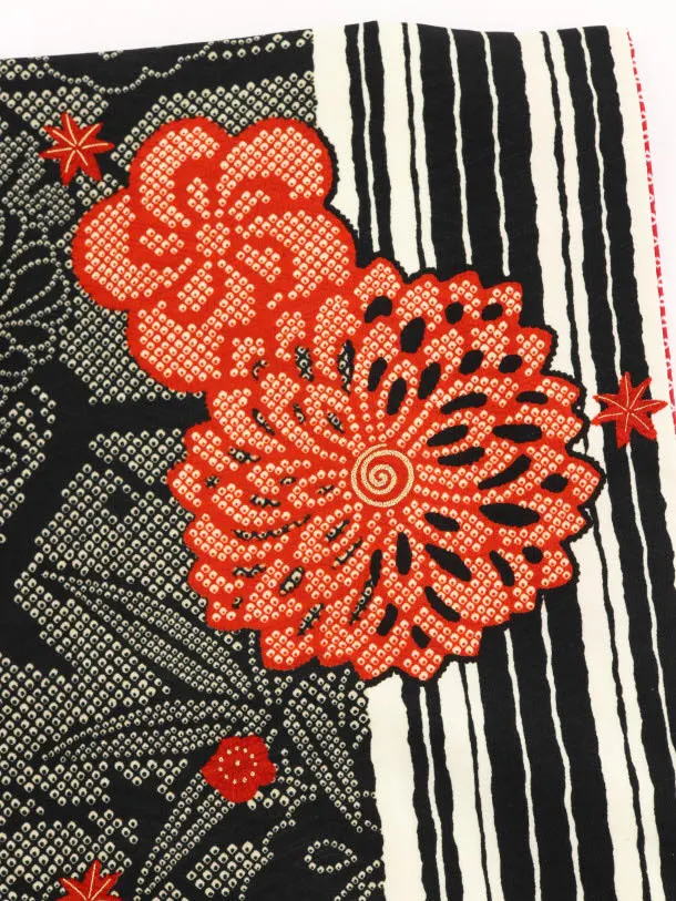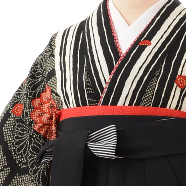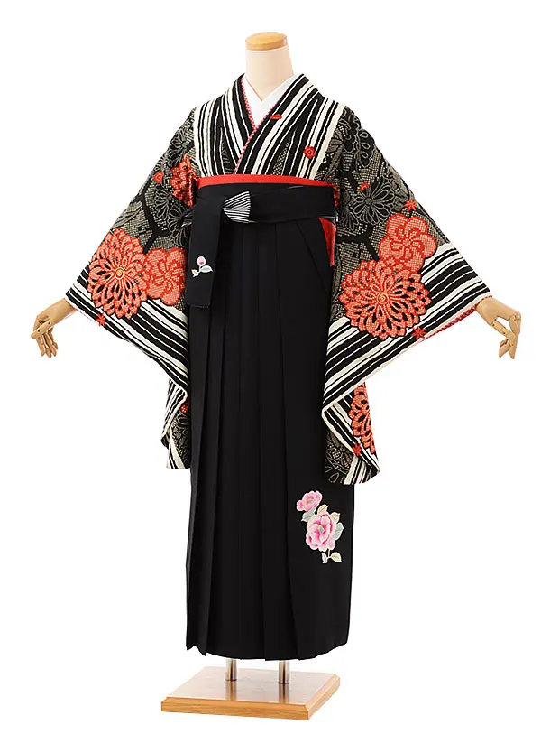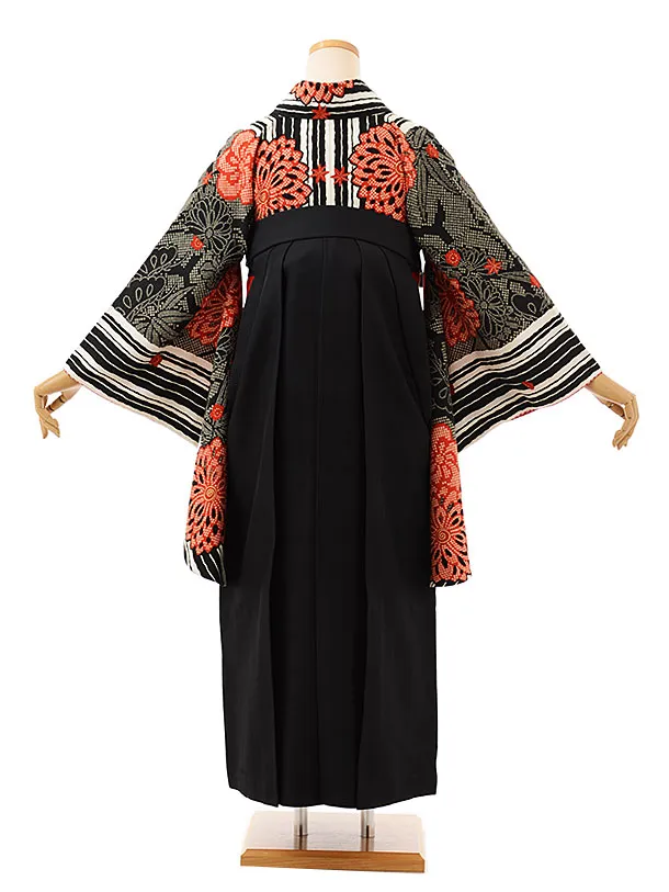 卒業式袴レンタルh736 九重 黒疋田柄菊x黒袴