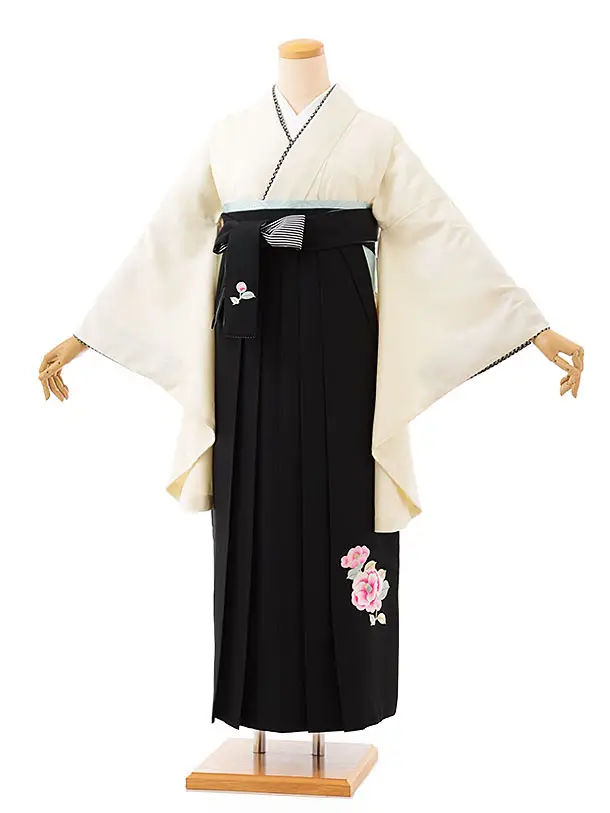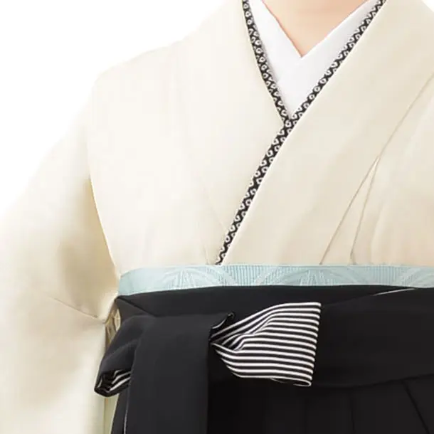卒業式袴レンタルh740 九重 クリーム亀甲地紋x黒袴