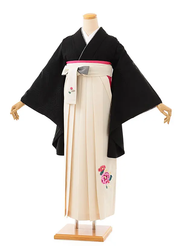 卒業式袴レンタルh741 九重 黒亀甲地紋xクリーム袴