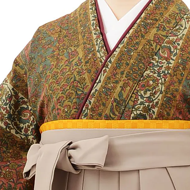 卒業袴レンタルh743 ひいな キャメル地 更紗xベージュ袴