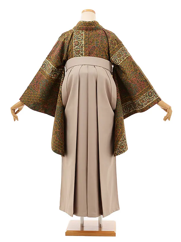 卒業式袴レンタルh744 ひいな キャメル地 更紗xベージュ袴