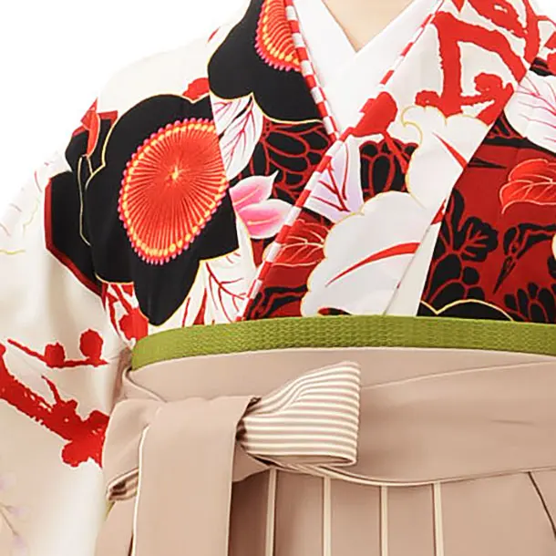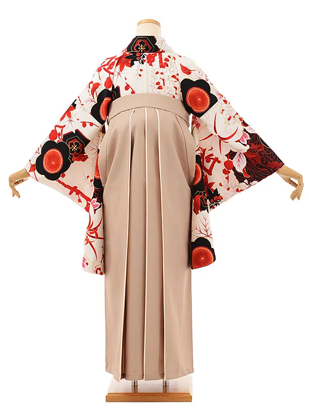 卒業式袴レンタルh762 白地梅百合xベージュアイボリー袴