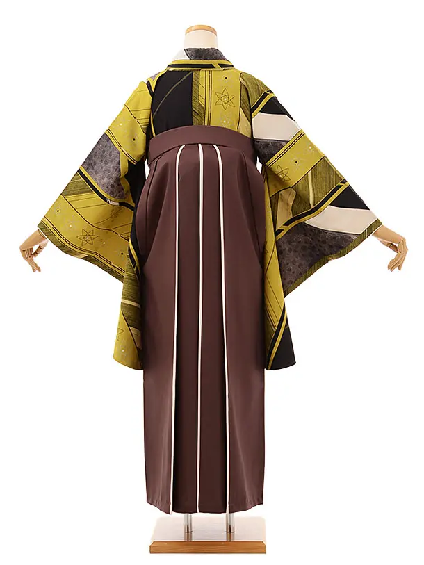 卒業式袴レンタルh765 オリーブグリーン「閃光」xブラウンアイボリー袴