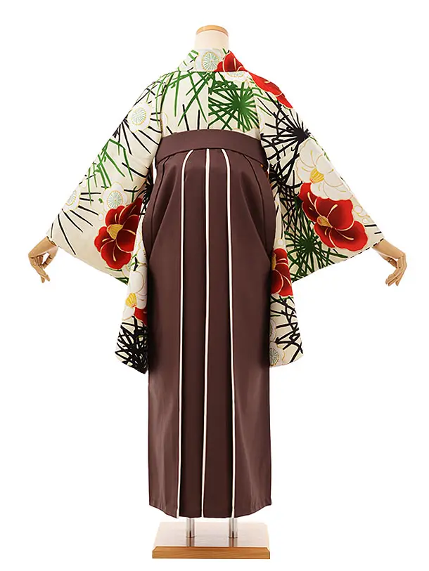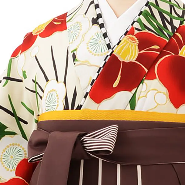 卒業式袴レンタルh766 オフホワイト椿xブラウンアイボリー袴