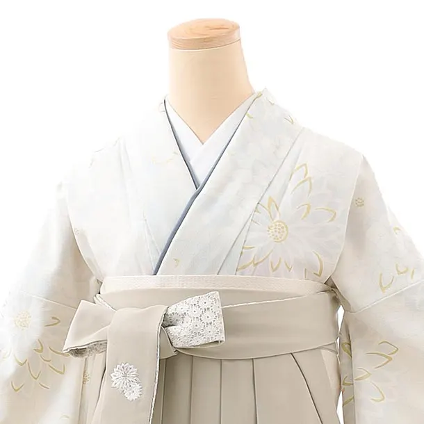 卒業式袴レンタルh770 JAPANSTYLE 薄グレー菊×アイボリー袴