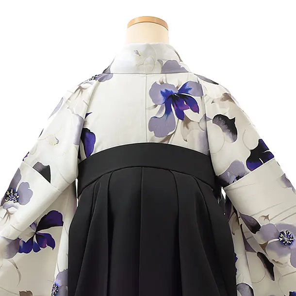 卒業式袴レンタルh772 JAPANSTYLE オフホワイト椿アネモネ×黒袴