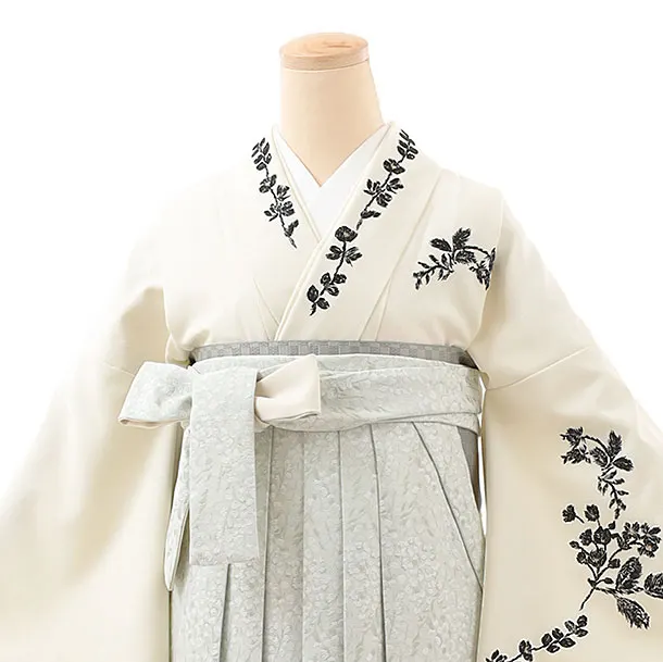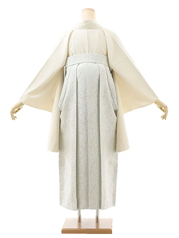 卒業袴h781 KamiShibai オフホワイトレース刺繍×薄緑ジャガード袴