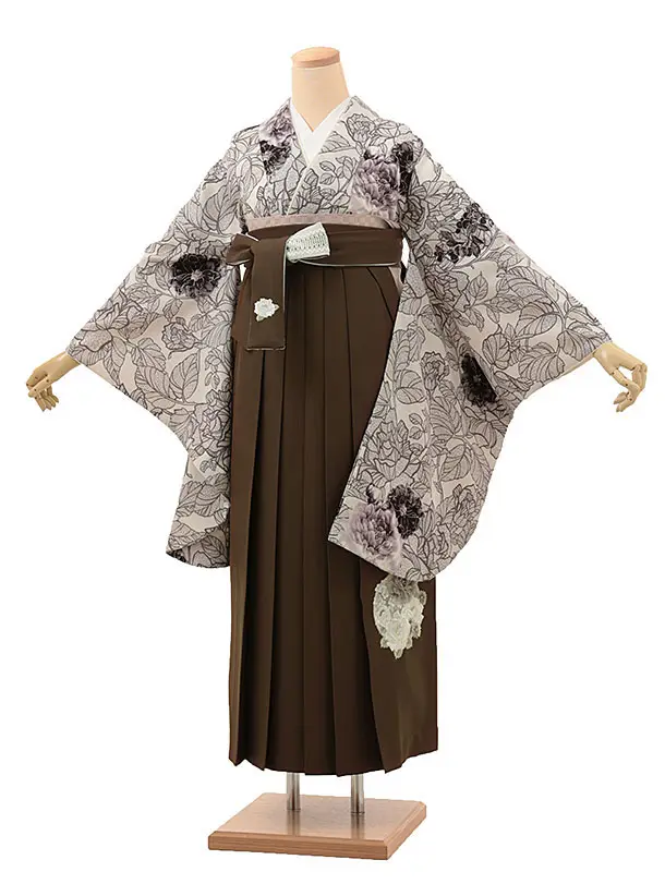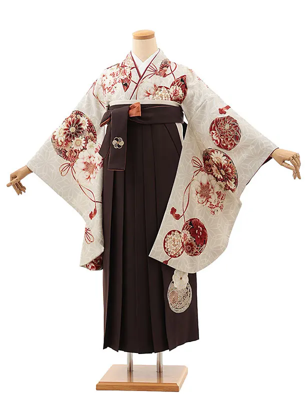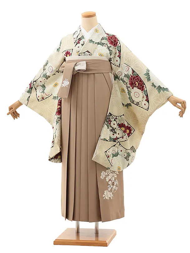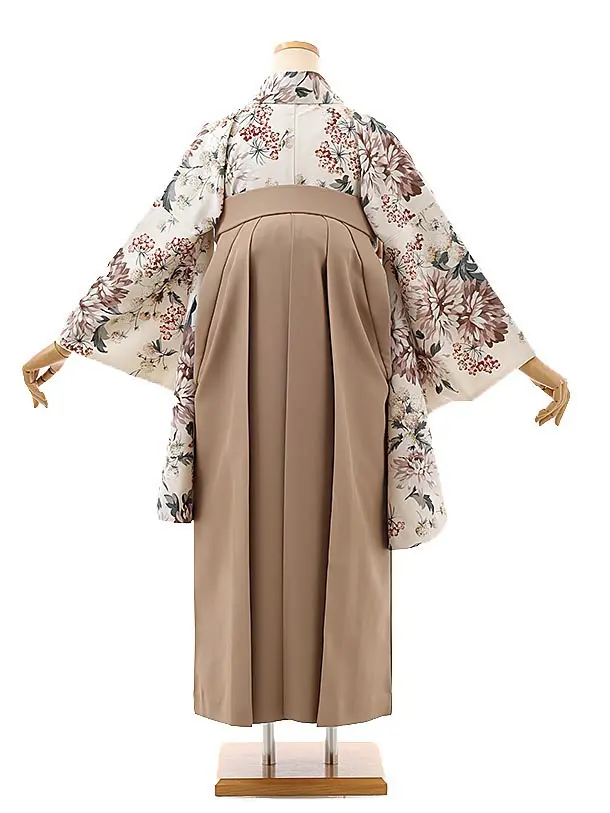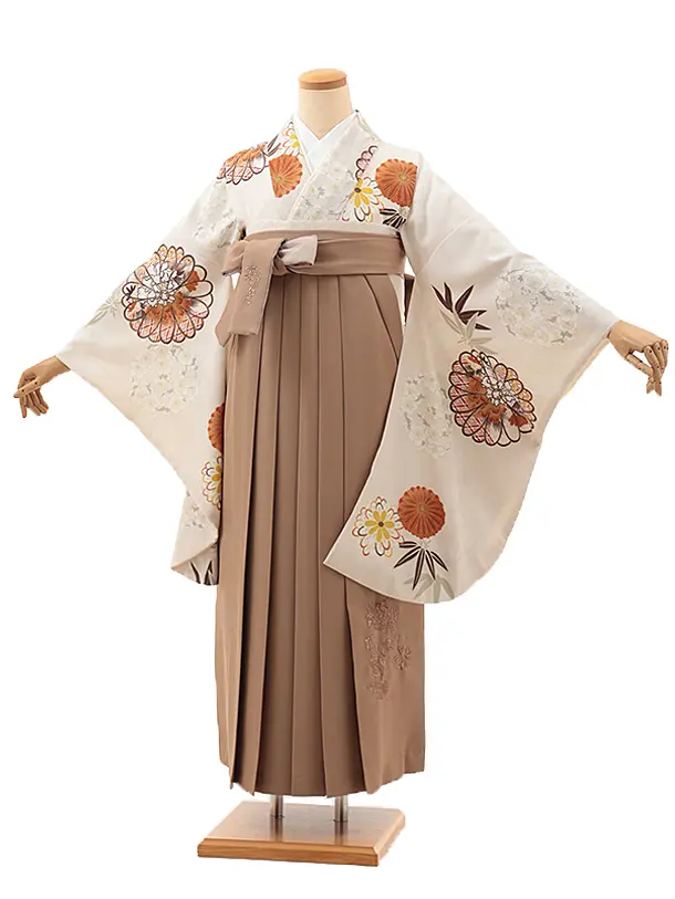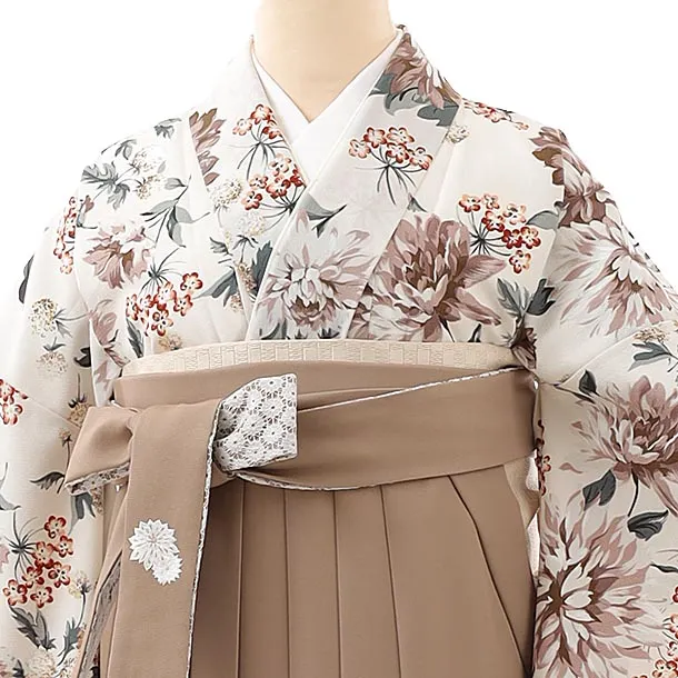卒業式袴レンタルh788 KamiShibai アイボリー菊×薄茶袴