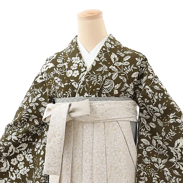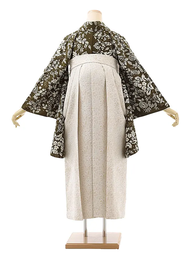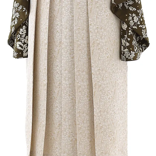 卒業式袴h797 KamiShibai オリーブ更紗×ベージュジャガード袴