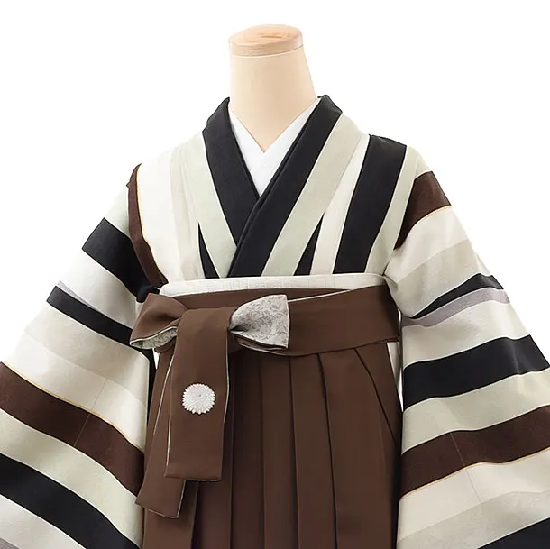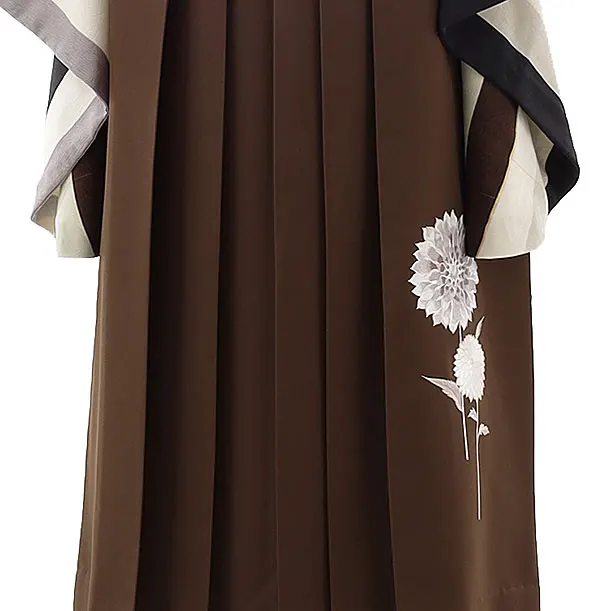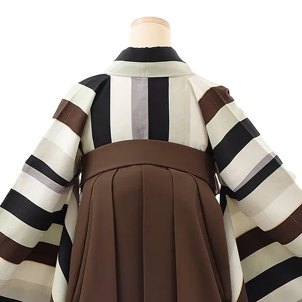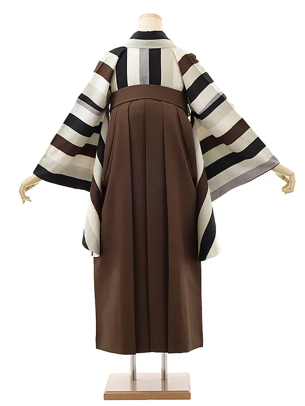 卒業式袴レンタルh806 紅一点 黒茶縞×茶袴
