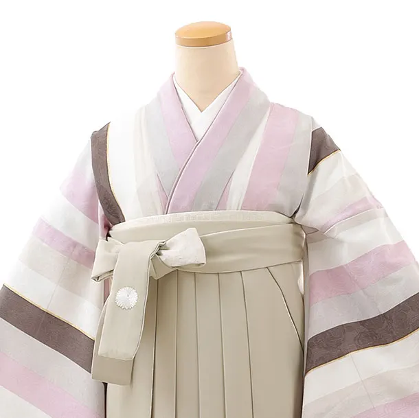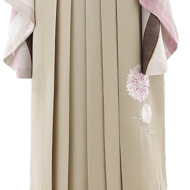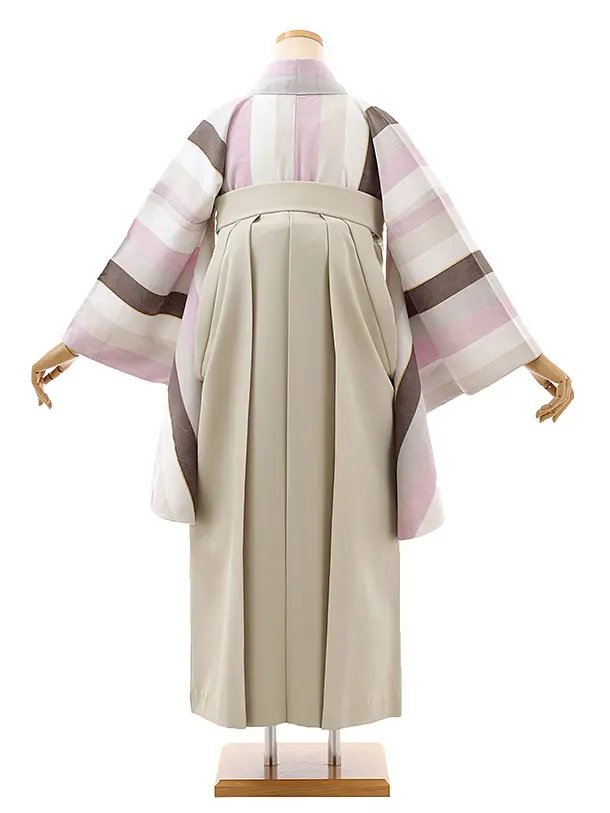 卒業式袴レンタルh807 紅一点 茶ピンク縞×ベージュ袴