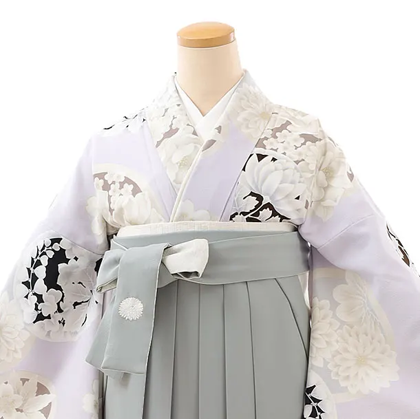 卒業式袴レンタルh811 紅一点 薄紫丸紋×グレー袴