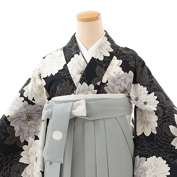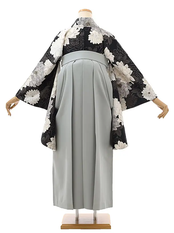 卒業式袴レンタルh816 紅一点 黒地菊×グレー袴
