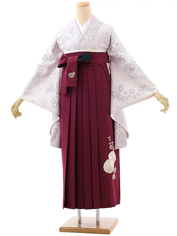卒業式袴レンタルh821 Kansai 薄紫菊×ボルドー袴