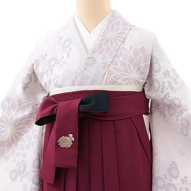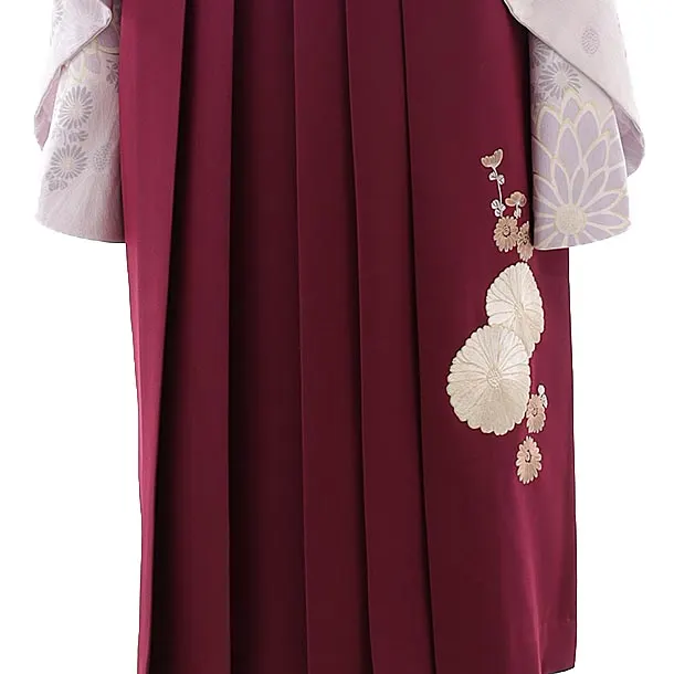 卒業式袴レンタルh822 Kansai 薄紫菊×ボルドー袴