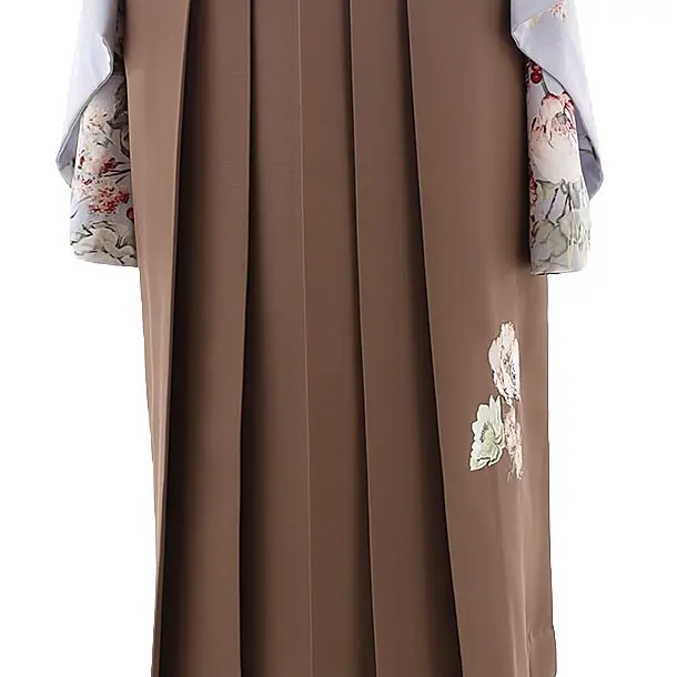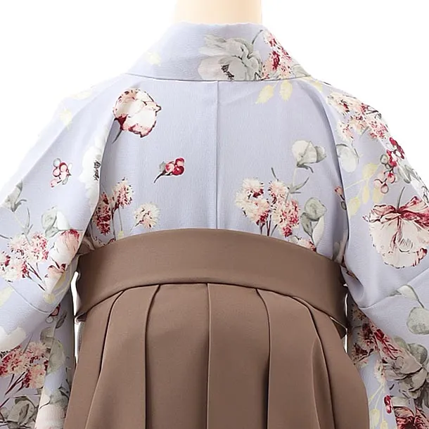 卒業式袴レンタルh825 SUGER KEI ブルー水彩花柄×茶色袴