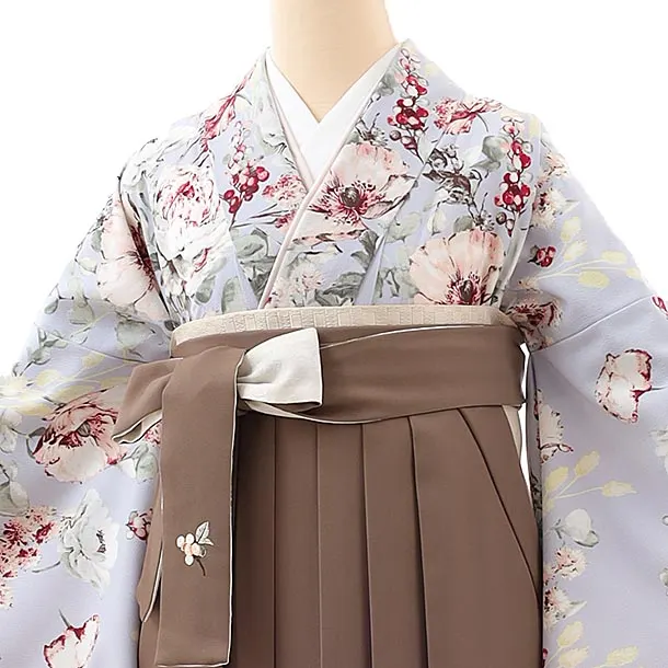 卒業式袴レンタルh826 SUGER KEI ブルー水彩花柄×茶色袴