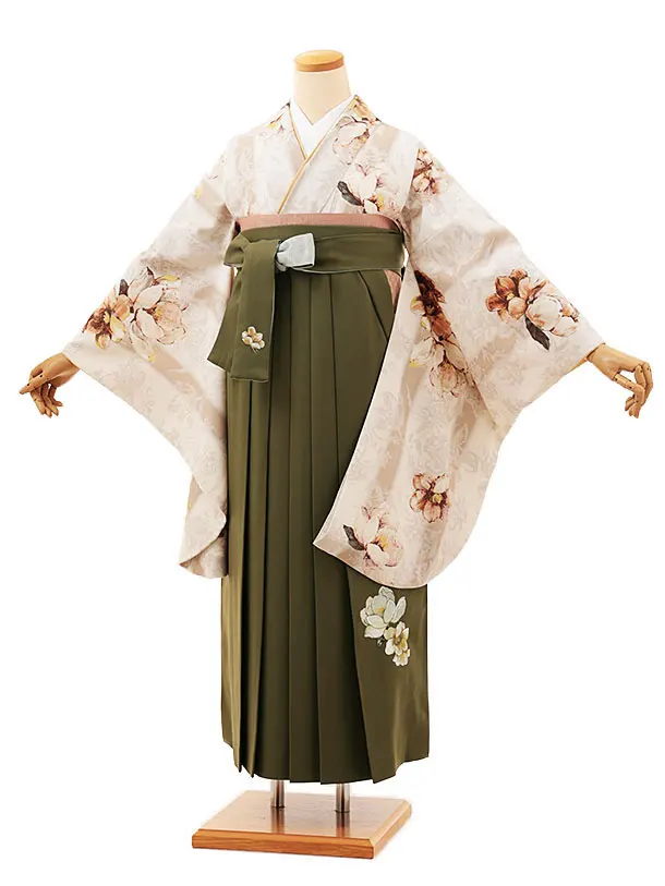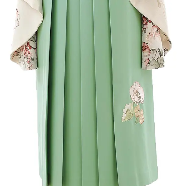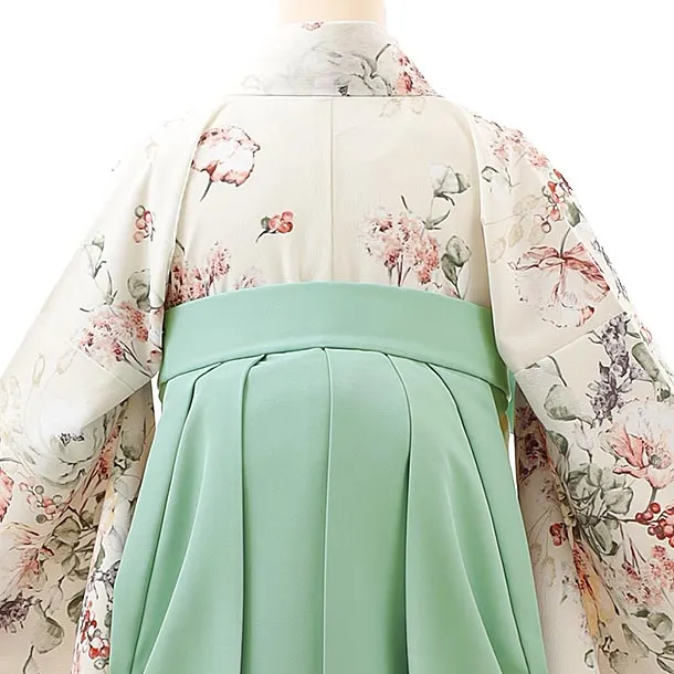 卒業式袴レンタルh832 SUGER KEI クリーム水彩花柄×ミントグリーン袴
